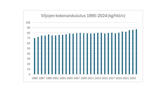 Kuva: Viljojen kokonaiskulutus Suomessa 1995-2024